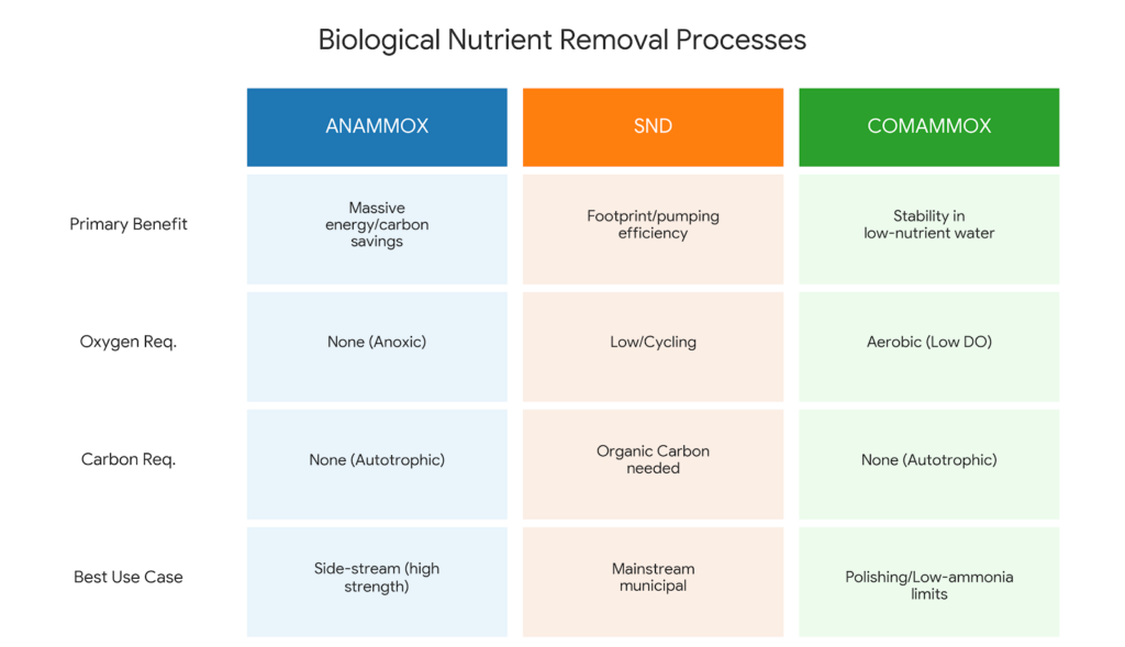 As we push toward “Net Zero” and more sustainable plant operations, new biological pathways are changing the game. Today, we’re diving into three technologies—ANAMMOX, SND, and COMAMMOX—to understand how they work and why they matter for your facility.